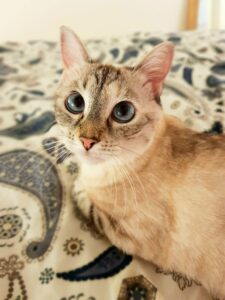 Cette adorable minette a été adoptée en refuge à l’âge d’un an et je la garde depuis deux ans.